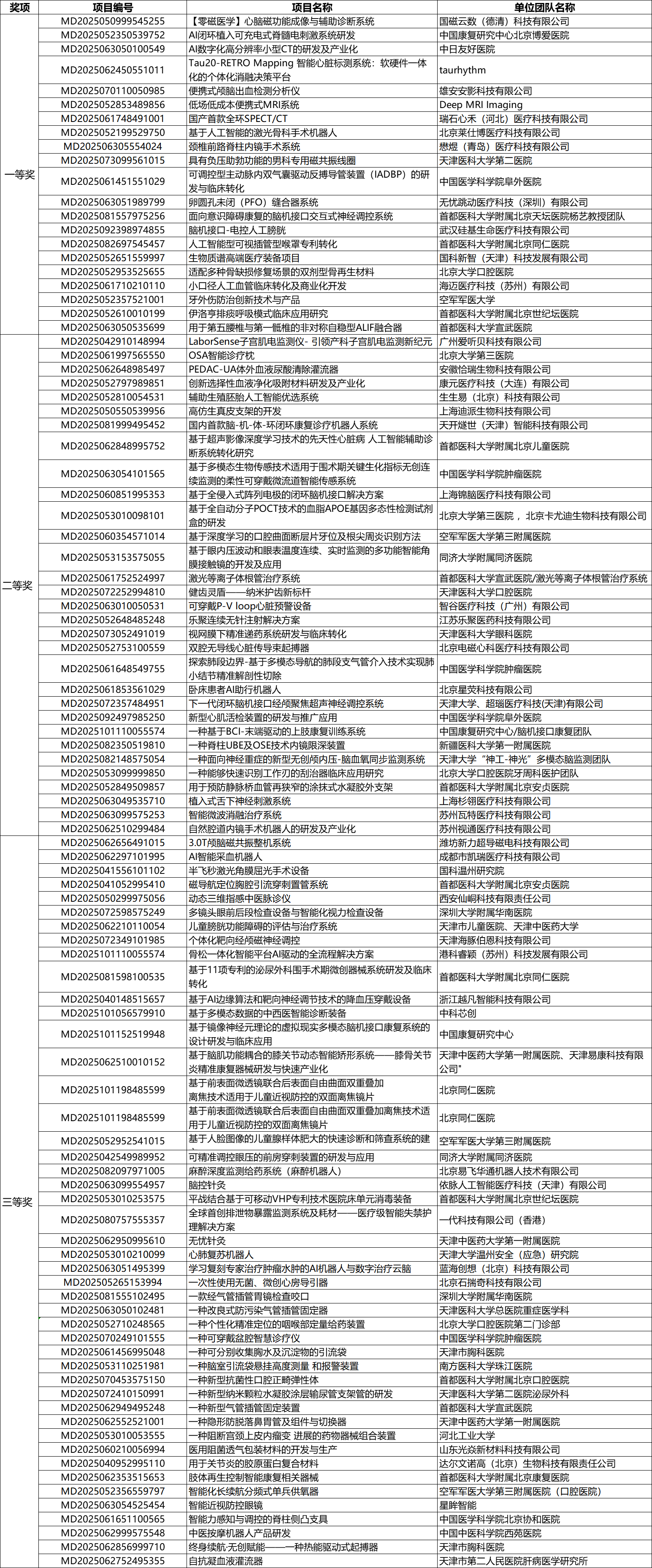 第八届(2025)中国医疗器械创新网创业大赛总决赛获奖名单