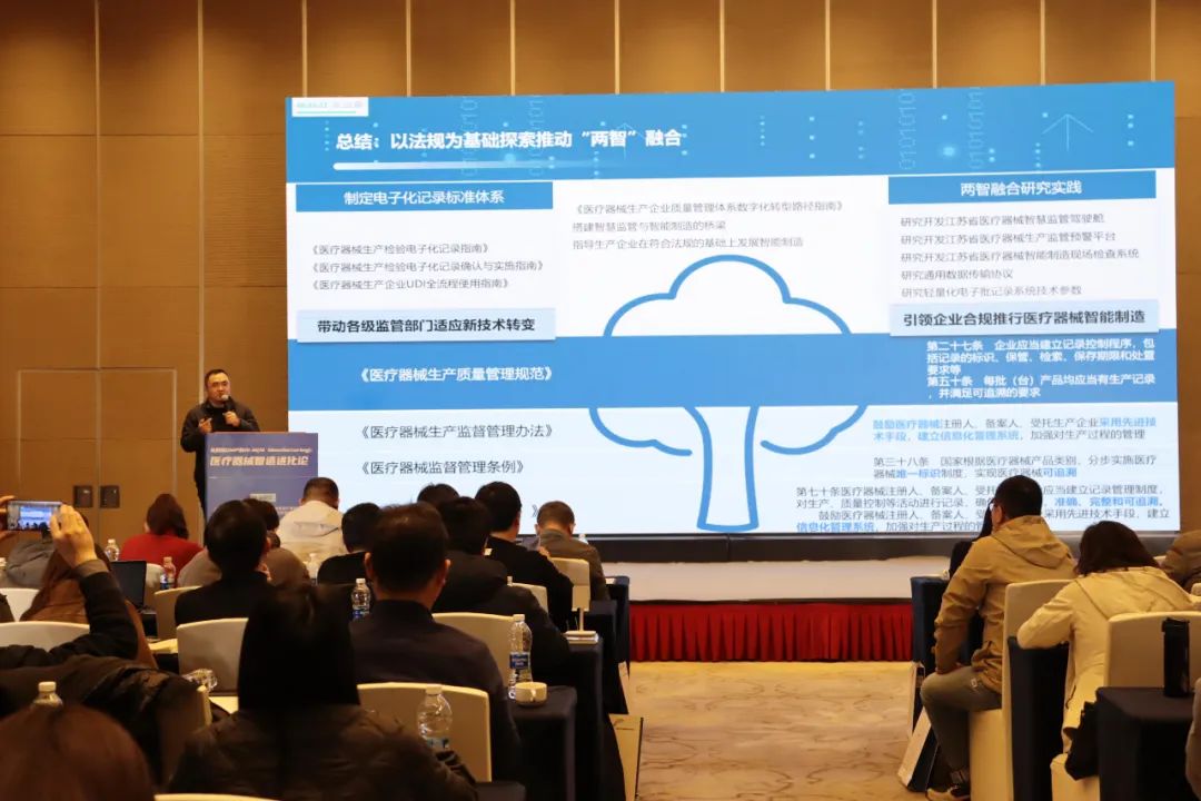 江苏省药监局医疗器械生产监管处孙文明先生系统回顾了江苏省医疗器械"两智"融合的创新实践,重点介绍了《医疗器械生产检验电子化记录指南》等标准体系框架、UDI全流程追溯深化应用以及标杆企业的数字化转型经验。通过建立智慧监管驾驶舱和预警模型,实现了探索动态风险监控与预判,制定了电子批记录系统相关技术参数。他呼吁医疗器械企业逐步推进数智化转型并前瞻性探索AI在生产过程的应用实践。