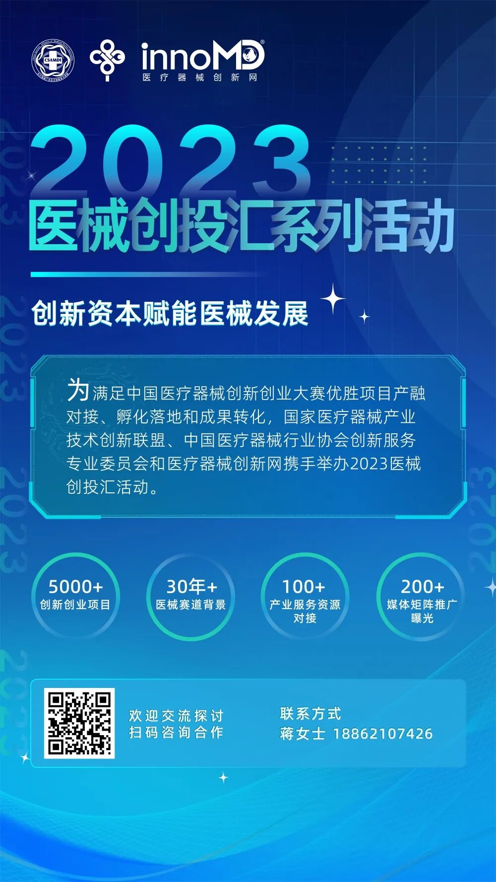 为满足中国医疗器械创新网创业大赛优胜项目产融对接、孵化落地和成果转化,国家医疗器械产业技术创新联盟、中国医疗器械行业协会医疗器械创新网网专业委员会和医疗器械创新网网共同联合举办“聚势共赢·创投相伴 ”2023医械创投汇系列活动。